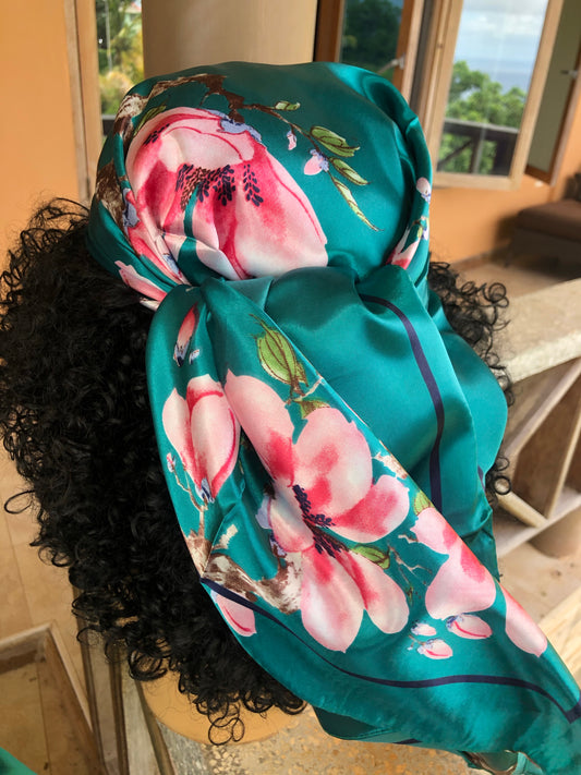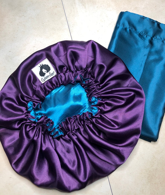 Turquoise/ Orange Solid Reversible Satin Bonnet