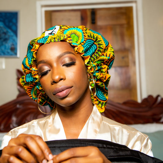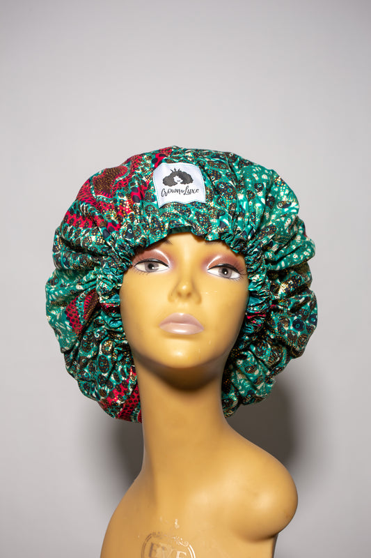 Turquoise/ Orange Solid Reversible Satin Bonnet