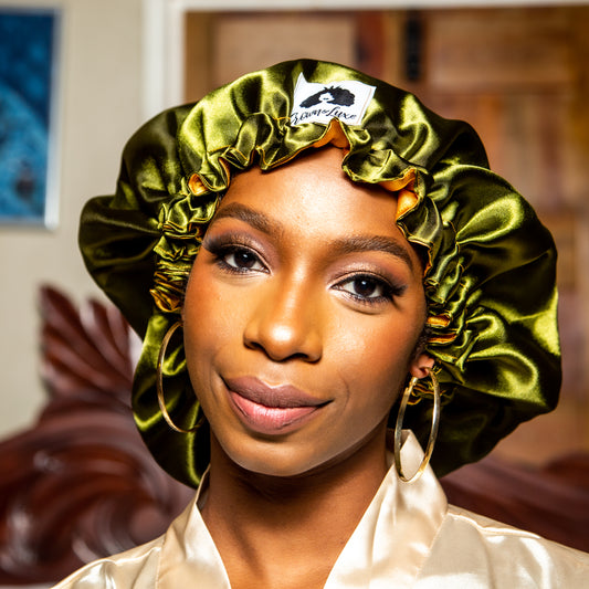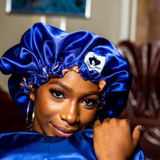 Navy Blue/ Black Solid Reversible Satin Bonnet