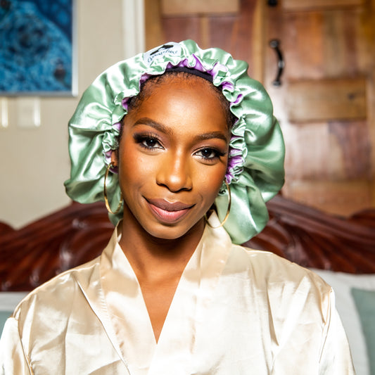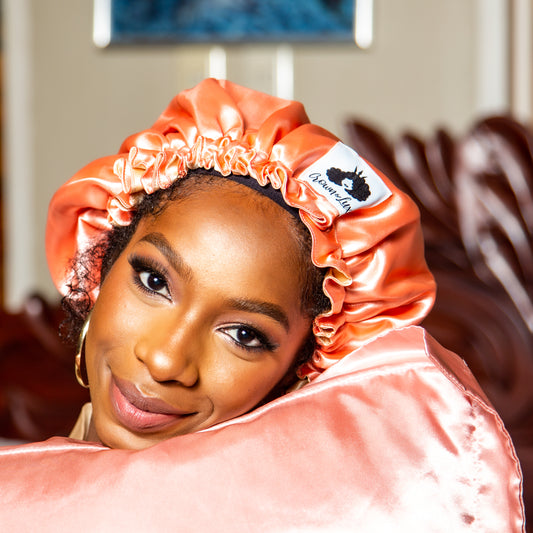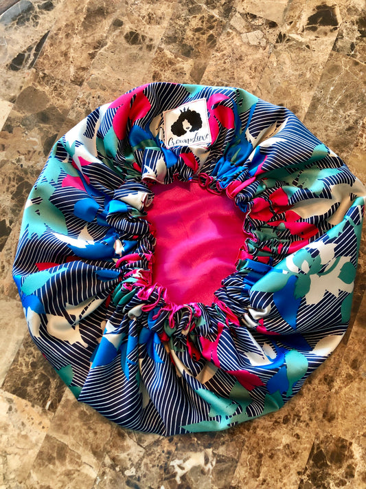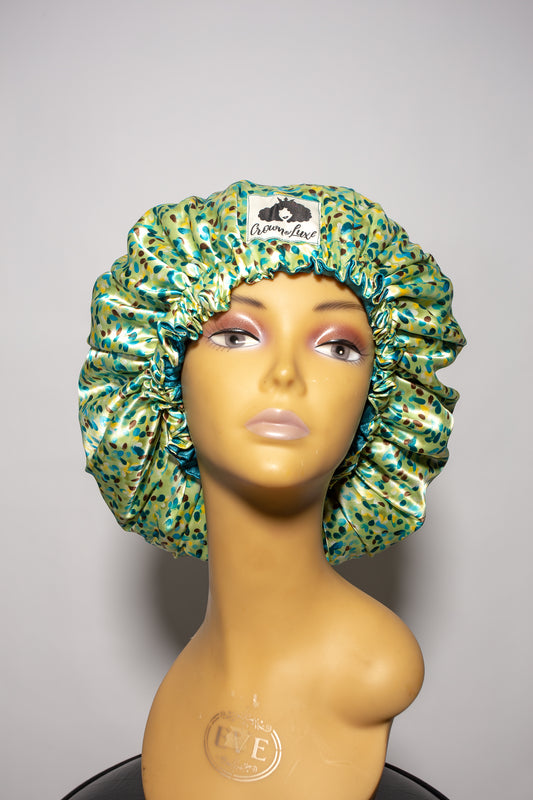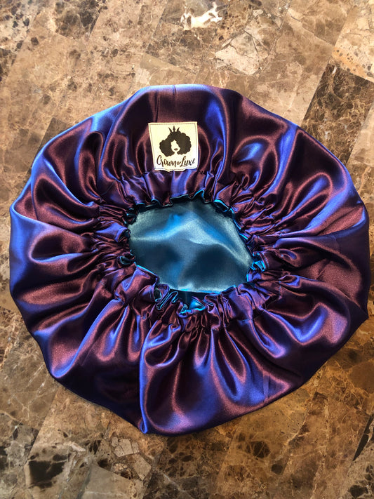Turquoise/ Orange Solid Reversible Satin Bonnet